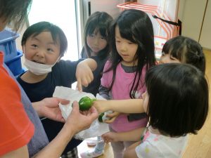 「きゅうりはデザートにするわ!」「デザートきゅうりやなぁ!」と、最後のお楽しみにとっておく子もいました。
